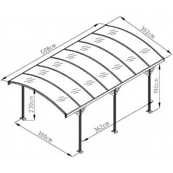 Stogas pagamintas iš lengvų, bet patvarių polikarbonato plokščių su įrengta vandens nutekėjimo sistema. Atraminiai stulpai yra reguliuojami: viršutinėse sijose yra grioveliai,
